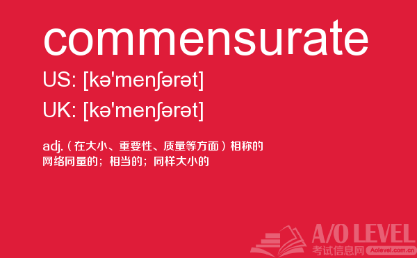 a-level的成绩分为a、b、c、d、e、u六个等级,a为最优,e为通过,u为不及格。如果学生对某门课的成绩不满意,可以选择重考,最终成绩以最好的一次为准。那么a-level考试想要取得a-level高分大家需要做到哪些呢?a/o-level考试网给大家带来的很多a-level考试经验,alevel考试技巧等等,想要考好a-level考试,不仅要知道这些,对于关于a-level考试的所有资讯都需要了解,最重点的是a-level词汇量的积累,今天a/o-level考试网就给大家带来的a-level的考试单词commensurate的全面解析。如果您想了解alevel考试用品,alevel考试原题,上海alevel培训机构,alevel难度等关于a-level考试的相关资讯,请继续浏览并关注课窝a/o-level考试网。