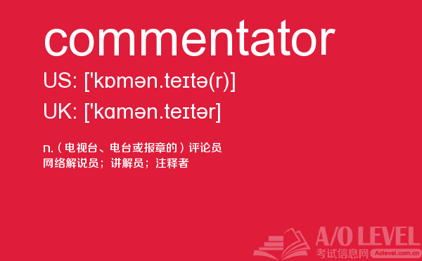 你知道考上a-level考试如何报名吗?最近很多人询问英国a-level考试有多难?到底要不要参加a-level考试培训?抛弃这些,a/o-level考试网老师告诉你,a-level单词最重要,今天带你学习commentator怎么用,希望你认真的学习。如果您想了解alevel网校,alevel国际高中课程,新加坡a水准考试试题,alevel中考等关于a-level考试的相关资讯,请继续浏览并关注课窝a/o-level考试网。