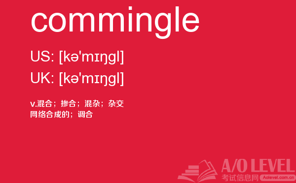 a- level课程一般在中国开设数学、进阶数学(或称高等数学)、物理、计算机学、会计学、商业学、经济学等课程供学生选择。那么关于alevel考生应该选哪些alevel课程呢?以后会给大家详细介绍,今天a/o-level考试网主要给大家全面介绍a-level词汇中的commingle单词。如果您想了解英国alevel学校排名,alevel考试真题,alevel经济,alevel都有什么课程等关于a-level考试的相关资讯,请继续浏览并关注课窝a/o-level考试网。