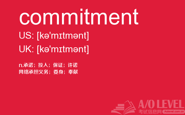 a-level课程证书被几乎所有英语授课的大学作为招收新生的入学标准。 在中国开设a-level课程旨在为中国学生提供进入国外大学的有效途径,具体目标为:培养在国内初高中成绩优秀的学生进入世界顶尖大学;培养在国内初高中成绩中等的学生进入世界一流大学;培养在国内初高中成绩一般的学生考取适合自己的大学。今天alevel考试网小编给大家详细解析a-level考试单词commitment。如果您想了解alevel经济学真题,a水准认可英联邦国家,查询alevel考试报名信息2018,alevel数学怎么选等关于a-level考试的相关资讯,请继续浏览并关注课窝a/o-level考试网。