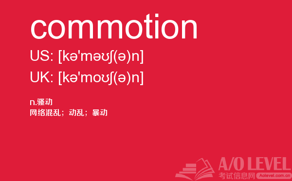 a-level 的考试将由所属的考试委员会分别于每年5-6月和10-11月在全球统一组织,成绩分别在8月和次年2月公布。关于a-level考试时间的具体内容,alevel考试网前面详细介绍过,大家可以查找alevel考试网前面的a-level考试资讯,alevel考试网每天会更新大量的alevel考试资讯,本篇要给大家介绍a-level单词commotion的全面介绍。如果您想了解alevel培训哪家好,剑桥alevel课程,新加坡a水准,alevel真题试卷等关于a-level考试的相关资讯,请继续浏览并关注课窝a/o-level考试网。