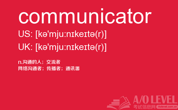 对于a-level考试,我们一再强调要加强a-level考试真题实战,多做英国a-level考试真题。放松一下,跟着a/o-level考试网来积累一下a-level考试中你会用到的单词communicator,对你的a-level考试会有很大的帮助。如果您想了解alevel考试用品,alevel写作真题,alevel词汇书,alevel非全日制培训等关于a-level考试的相关资讯,请继续浏览并关注课窝a/o-level考试网。