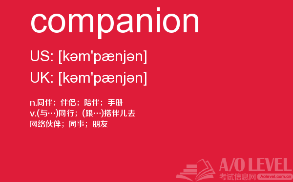 英国a-level入学考试的机会真的很少,每年就5-6月和10-11月两场考试。所以千万别因为不必要的原因,影响了a-level入学考试。为了让大家更好的在英国留学,a/o-level考试网会为大家带来a-level考试相关的资讯,一起来看看a/o-level考试网今天带来的词汇companion的解析。如果您想了解新加坡大学alevel,新加坡a水准考试试题,上海alevel中心,alevel考试时间费用等关于a-level考试的相关资讯,请继续浏览并关注课窝a/o-level考试网。