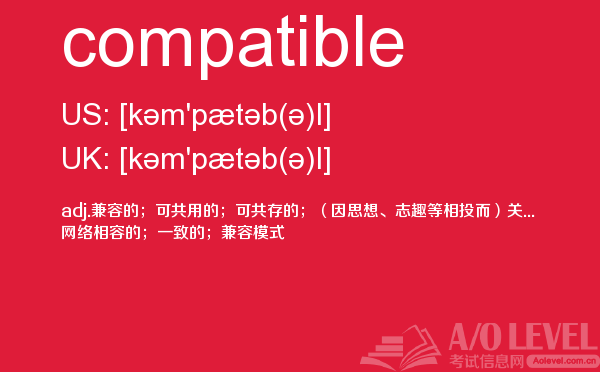 对于a-level考试,我们一再强调要加强a-level考试真题实战,多做英国a-level考试真题。放松一下,跟着a/o-level考试网来积累一下a-level考试中你会用到的单词compatible,对你的a-level考试会有很大的帮助。如果您想了解新加坡大学alevel,爱德思alevel答案,alevel一对一,alevel可以申请哪里等关于a-level考试的相关资讯,请继续浏览并关注课窝a/o-level考试网。