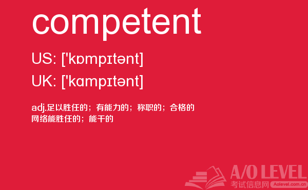 就读于国内学校的学生, 在申请英国学校时需要提交英国a-level考试成绩。很多考生因此英国a-level考试搞得头疼,放松一下,跟着a/o-level考试网来看看英国留学资讯吧!今天课窝a/o-level考试网小编给大家带来a-level考试重点词汇competent的全解,对你肯定有帮助。如果您想了解alevel进阶数学分数段,a水准简单吗,新加坡a水准考试难吗,alevel考点等关于a-level考试的相关资讯,请继续浏览并关注课窝a/o-level考试网。