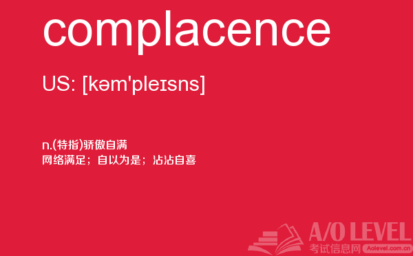英国、加拿大、爱尔兰、澳大利亚、新西兰、新加坡等英语国家没有统一的大学入学标准,虽然它们都认可a-level证书,但是各所大学、各个专业对学生学过哪几门a-level课程以及成绩都有不同的要求。所以怎样选择课程并没有一个唯一的答案。对于如何选课的问题要根据具体情况而定。这些在你的a-level考试中都不是重要的,重要的是a-level成绩,a-level成绩取决于a-level词汇量,那么今天小编给大家带来a-level考试重点词汇complacence的全面解析。如果您想了解alevel是什么,alevel面试,alevel去哪考试在中国,alevel成绩等关于a-level考试的相关资讯,请继续浏览并关注课窝a/o-level考试网。