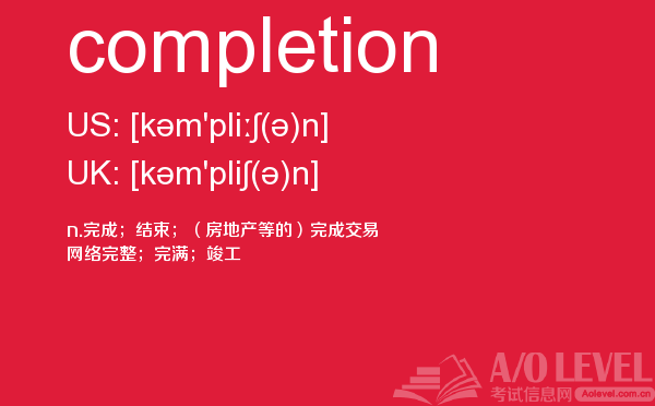 a-level考试报名须知是必须要懂得,这样在面对英国a-level入学考试的时候自己也知道应该怎么面对。为了提高考生们的a-level模拟考卷成绩,a/o-level考试网会经常给大家带来a-level考试资讯,下面就是今天课窝a/o-level考试网小编给大家讲解关于a-level考试词汇completion怎么用。如果您想了解alevel学校什么时候招生,alevel数学词汇,alevel申请成绩,a水准报名时间地点费用等关于a-level考试的相关资讯,请继续浏览并关注课窝a/o-level考试网。
