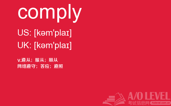 就读于国内学校的学生, 在申请英国学校时需要提交英国a-level考试成绩。很多考生因此英国a-level考试搞得头疼,放松一下,跟着a/o-level考试网来看看英国留学资讯吧!今天课窝a/o-level考试网小编给大家带来a-level考试重点词汇comply的全解,对你肯定有帮助。如果您想了解剑桥alevel课程费用,alevel物理as简答题,alevel考试难度,了解alevel培训等关于a-level考试的相关资讯,请继续浏览并关注课窝a/o-level考试网。