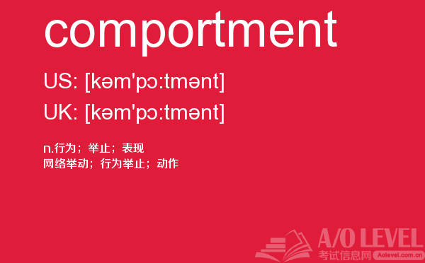 a-level的成绩分为a、b、c、d、e、u六个等级,a为最优,e为通过,u为不及格。如果学生对某门课的成绩不满意,可以选择重考,最终成绩以最好的一次为准。那么a-level考试想要取得a-level高分大家需要做到哪些呢?a/o-level考试网给大家带来的很多a-level考试经验,alevel考试技巧等等,想要考好a-level考试,不仅要知道这些,对于关于a-level考试的所有资讯都需要了解,最重点的是a-level词汇量的积累,今天a/o-level考试网就给大家带来的a-level的考试单词comportment的全面解析。如果您想了解alevel生物,alevel考试报名时间,考alevel多少钱,alevel阅读技巧等关于a-level考试的相关资讯,请继续浏览并关注课窝a/o-level考试网。