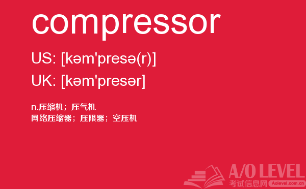 英国留学对于留学成绩的比拼越来越激烈,申请英国院校留学的一大指标a-level考试分数要求也水涨船高.虽然成绩只是申请的一部分,但不得不说,好看的英国a-level成绩是学生是否优秀的证据。放松一下跟着a/o-level考试网来学习一下a-level考试词汇compressor的应用。如果您想了解alevel考试登记,alevel经济教材是哪个,alevel机构,alevel物理难吗等关于a-level考试的相关资讯,请继续浏览并关注课窝a/o-level考试网。