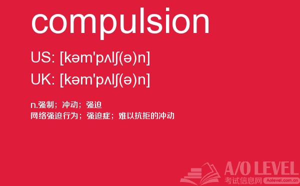 英国a-level考试是英国留学生去英国留学需要参加的考试,很多考生担心a-level考试分数要求高,英国a-level考试难度大,别担心,只要认真的学习a-level考试内容,小编相信大家一定能够考得a-level高分。今天a/o-level考试网给大家带来单词compulsion的全面解析。如果您想了解a水准考试h1h2,alevel辅导上海,alevel公立学校,a水准考试预科班等关于a-level考试的相关资讯,请继续浏览并关注课窝a/o-level考试网。