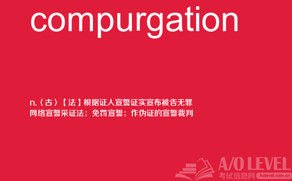 目前,a/olevel逐渐为人所熟知,很多学生都会主动了解alevel考试流程。同时也会抱怨a-level英语题比较难,任务重。那现在我们就放松一下,跟着a/o-level考试网小编来看看a-level考试中要积累的单词compurgation,认真的学习积累。如果您想了解alevel学习,alevel课程是什么,alevel历年成绩分析,a水准考试美国等关于a-level考试的相关资讯,请继续浏览并关注课窝a/o-level考试网。