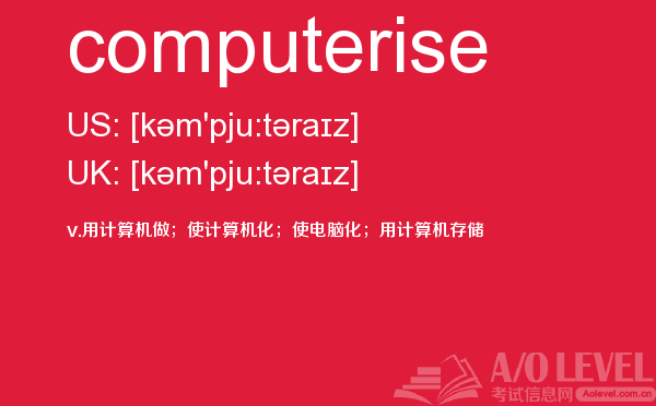 a-level词汇量受到的关注越来越高,很多家长担心a-level考试培训费用,a-level考试录取竞争会不会越来越激烈?这些问题在课窝a/o-level考试网小编都会给大家带来详细介绍,今天a/o-level考试网小编给大家带来的是在a-level考试中的重点词汇computerise的详细介绍。如果您想了解牛津大学alevel,上海alevel国际学校,alevel数学评分标准,alevel考试大纲等关于a-level考试的相关资讯,请继续浏览并关注课窝a/o-level考试网。