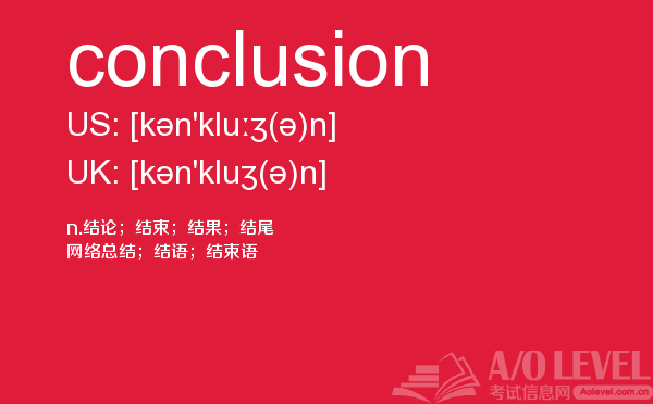 在a-level备考的过程中,想要冲刺到a-level写作的高分,相信大家都应该会知道,除了需要掌握a-level写作的一些技巧之外,优化文章中的词汇和句型也是冲刺高分的关键所在。也就是说,只有充分掌握了语法知识,才能让我们的的文章更为丰富形象。除了a-level写作,在a-level其他方面同学们也需要了解,下面课窝a/o-level考试网小编给大家带来a-level单词conclusion的介绍。如果您想了解a水准考试预备班怎么样,化学alevel2018,alevel官方介绍,alevel课程选课等关于a-level考试的相关资讯,请继续浏览并关注课窝a/o-level考试网。