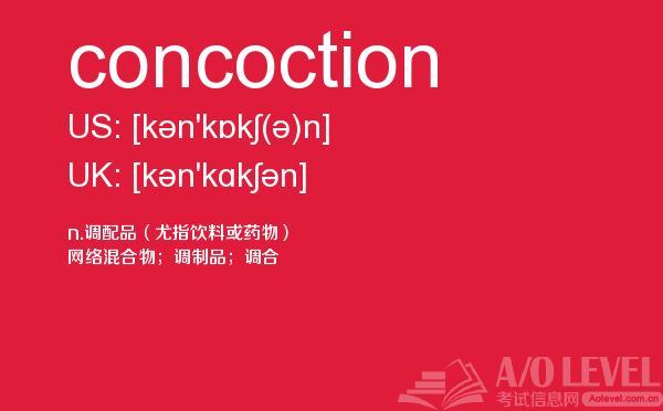 你知道考上a-level考试如何报名吗?最近很多人询问英国a-level考试有多难?到底要不要参加a-level考试培训?抛弃这些,a/o-level考试网老师告诉你,a-level单词最重要,今天带你学习concoction怎么用,希望你认真的学习。如果您想了解alevel网校,alevel国际高中课程,新加坡a水准考试试题,alevel中考等关于a-level考试的相关资讯,请继续浏览并关注课窝a/o-level考试网。