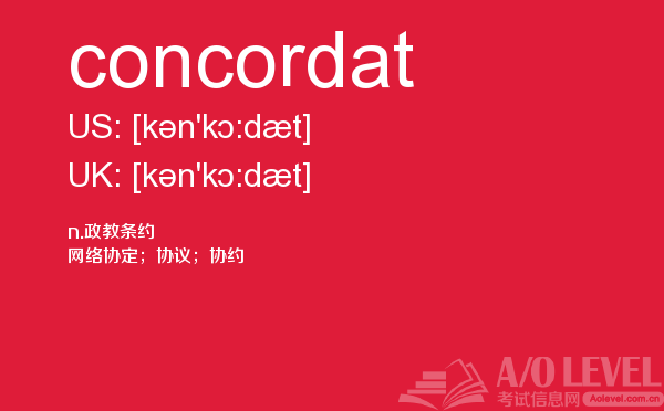 a-level考试报名须知是必须要懂得,这样在面对英国a-level入学考试的时候自己也知道应该怎么面对。为了提高考生们的a-level模拟考卷成绩,a/o-level考试网会经常给大家带来a-level考试资讯,下面就是今天课窝a/o-level考试网小编给大家讲解关于a-level考试词汇concordat怎么用。如果您想了解alevel学校什么时候招生,alevel数学词汇,alevel申请成绩,a水准报名时间地点费用等关于a-level考试的相关资讯,请继续浏览并关注课窝a/o-level考试网。