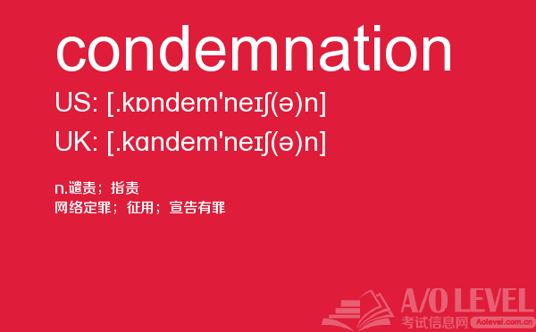 a- level课程一般在中国开设数学、进阶数学(或称高等数学)、物理、计算机学、会计学、商业学、经济学等课程供学生选择。那么关于alevel考生应该选哪些alevel课程呢?以后会给大家详细介绍,今天a/o-level考试网主要给大家全面介绍a-level词汇中的condemnation单词。如果您想了解alevel培训机构,alevel数学词汇,新加坡国alevel,alevel考试上限等关于a-level考试的相关资讯,请继续浏览并关注课窝a/o-level考试网。