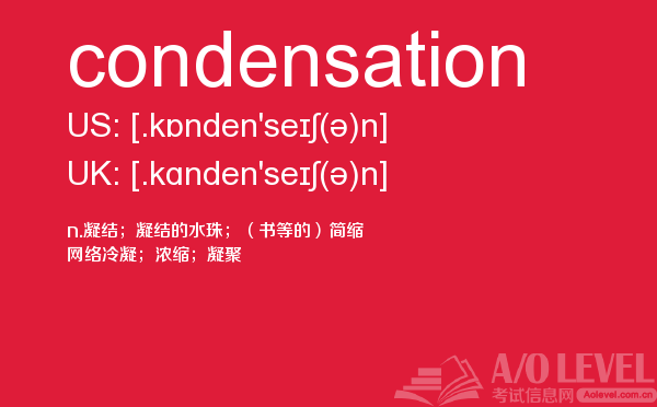 你知道考上a-level考试如何报名吗?最近很多人询问英国a-level考试有多难?到底要不要参加a-level考试培训?抛弃这些,a/o-level考试网老师告诉你,a-level单词最重要,今天带你学习condensation怎么用,希望你认真的学习。如果您想了解墨尔本大学alevel要求,alevel大学预录取时间,新加坡国alevel,英国alevel好学吗等关于a-level考试的相关资讯,请继续浏览并关注课窝a/o-level考试网。