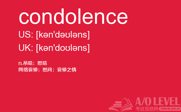 虽然英国a-level院校招生官常把“成绩不是决定录取与否的唯一因素”挂在嘴边,但不得不承认,a-level分数是学生优秀与否的有力证据,取得a-level成绩高分是肯定是优先考虑的。放松一下,先跟着a/o-level考试网来看看今天小编带来的是a-level单词condolence的介绍。如果您想了解alevel培训价格,新加坡alevel,alevel化学提纲,alevel国际高中课程等关于a-level考试的相关资讯,请继续浏览并关注课窝a/o-level考试网。