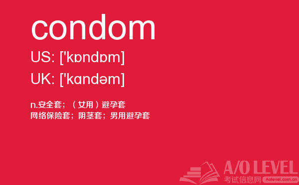英国a-level学校,从教学质量上来看私立学校更占优势,大部分中国留学生也选择私立学校来读,不过一般都是提前一年来申请学校。中国目前也有20几所a-level学校,每年也同样有走进剑桥牛津等世界顶级大学的学生。所以在国外和在国内都可以选择a-level学校来学习。在前面关于a-level选校的问题已经详细介绍过,那么今天a/o-level考试网小编主要想介绍的是a-level重难点词汇condom。希望对大家有帮助。如果您想了解alevel数学,alevel历年成绩分析,alevel物理知识,南京a水准培训等关于a-level考试的相关资讯,请继续浏览并关注课窝a/o-level考试网。