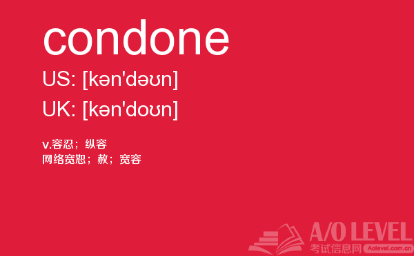 现在申请英国院校的中国孩子非常多,几乎每一个学生都在为一种叫做英国a-level的考试而努力着。a/o-level考试网老师为大家解析a-level考试重难点单词condone,大家认真学习,会有帮助。如果您想了解alevel考场地址,alevel中文考试真题,alevel物理常备词汇,alevel辅导等关于a-level考试的相关资讯,请继续浏览并关注课窝a/o-level考试网。