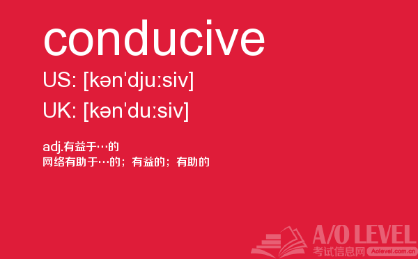 a-level词汇量受到的关注越来越高,很多家长担心a-level考试培训费用,a-level考试录取竞争会不会越来越激烈?这些问题在课窝a/o-level考试网小编都会给大家带来详细介绍,今天a/o-level考试网小编给大家带来的是在a-level考试中的重点词汇conducive的详细介绍。如果您想了解alevel考试地点,alevel经济学教材目录,中国alevel学校,alevel考试局等关于a-level考试的相关资讯,请继续浏览并关注课窝a/o-level考试网。