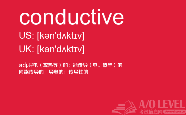 课窝a/o-level考试网上提供了许多信息可以供考生们参考,比如考生需要在此网站报名,打印准考证,或者搜寻与英国a-level考试内容相关的资料等等。考生如果想在短时间内,迅速掌握a-level考试资讯,就需要合理运用此网站的信息。今天带来的是a-level考试词汇之conductive的详细介绍。如果您想了解alevel数学教材,新加坡a水准预备班,alevel简介,英国中学alevel排名等关于a-level考试的相关资讯,请继续浏览并关注课窝a/o-level考试网。