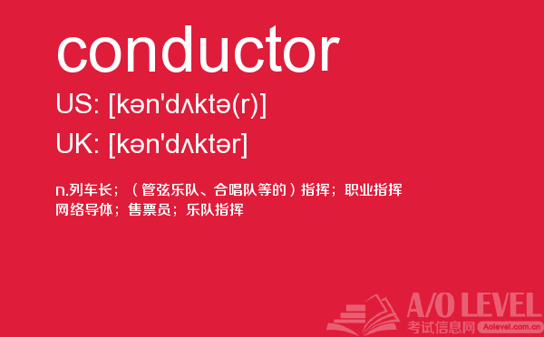 你知道考上a-level考试如何报名吗?最近很多人询问英国a-level考试有多难?到底要不要参加a-level考试培训?抛弃这些,a/o-level考试网老师告诉你,a-level单词最重要,今天带你学习conductor怎么用,希望你认真的学习。如果您想了解alevel英语试题,alevel考试哪两个阶段,新加坡olevelalevel,alevel澳洲等关于a-level考试的相关资讯,请继续浏览并关注课窝a/o-level考试网。