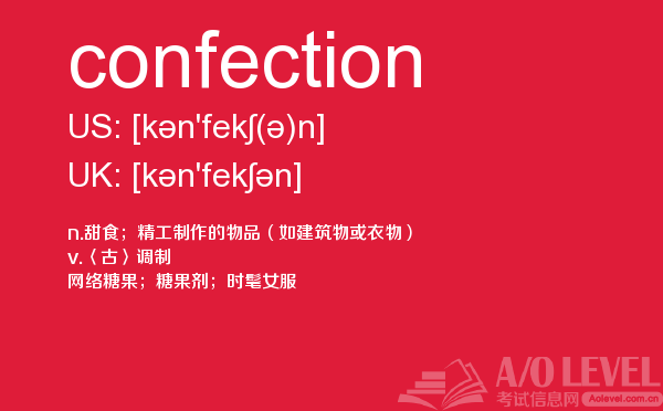 英国以其高质量的教学闻名于世,如果你还在思考a-level考试值不值得考?近几年的英国留学a-level考试的热潮足以证明一切!课窝a/o-level考试网会给大家带来a-level考试真题,a-level考试如何复习?等所有有关的a-level考试资讯。课窝a/o-level考试网今天带来a-level考试中很重要的单词confection的详细解析,会对你有帮助。如果您想了解alevel考试网,alevel物理,alevel选课,alevel教材等关于a-level考试的相关资讯,请继续浏览并关注课窝a/o-level考试网。