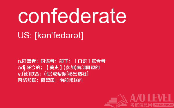 现在申请英国院校的中国孩子非常多,几乎每一个学生都在为一种叫做英国a-level的考试而努力着。a/o-level考试网老师为大家解析a-level考试重难点单词confederate,大家认真学习,会有帮助。如果您想了解alevel培训价格,中国alevel成绩申请国外名校,alevel中心哪里有,alevel作文思路等关于a-level考试的相关资讯,请继续浏览并关注课窝a/o-level考试网。