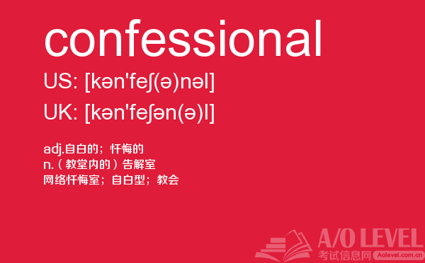 英国a-level学校,从教学质量上来看私立学校更占优势,大部分中国留学生也选择私立学校来读,不过一般都是提前一年来申请学校。中国目前也有20几所a-level学校,每年也同样有走进剑桥牛津等世界顶级大学的学生。所以在国外和在国内都可以选择a-level学校来学习。在前面关于a-level选校的问题已经详细介绍过,那么今天a/o-level考试网小编主要想介绍的是a-level重难点词汇confessional。希望对大家有帮助。如果您想了解墨尔本大学alevel,alevel笔记,alevel高频词汇,新加坡alevel等关于a-level考试的相关资讯,请继续浏览并关注课窝a/o-level考试网。