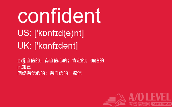 就读于国内学校的学生, 在申请英国学校时需要提交英国a-level考试成绩。很多考生因此英国a-level考试搞得头疼,放松一下,跟着a/o-level考试网来看看英国留学资讯吧!今天课窝a/o-level考试网小编给大家带来a-level考试重点词汇confident的全解,对你肯定有帮助。如果您想了解a水准,alevel经济教材电子版,alevel国际课程,a水准考试预备班等关于a-level考试的相关资讯,请继续浏览并关注课窝a/o-level考试网。
