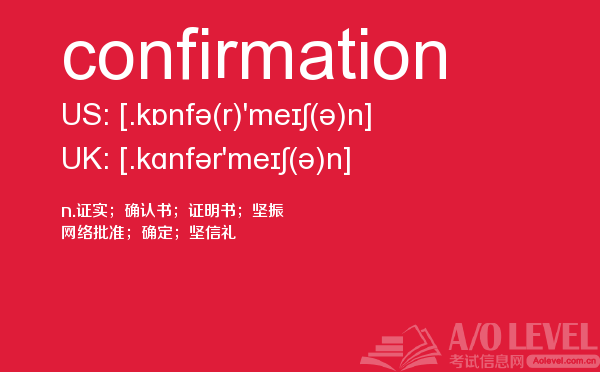a-level词汇量受到的关注越来越高,很多家长担心a-level考试培训费用,a-level考试录取竞争会不会越来越激烈?这些问题在课窝a/o-level考试网小编都会给大家带来详细介绍,今天a/o-level考试网小编给大家带来的是在a-level考试中的重点词汇confirmation的详细介绍。如果您想了解alevel化学难不难,alevel生物,香港中文大学alevel,alevel报名流程等关于a-level考试的相关资讯,请继续浏览并关注课窝a/o-level考试网。