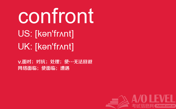 英国留学考试a-level考试考什么?a-level考试题型一定要注意积累和总结。课窝a/o-level考试网小编每天会给大家带来a-level考试的相关资讯,今天带来a-level单词confront的解析,希望大家认真的积累a-level考试词汇。如果您想了解alevel考试价格,alevel经济知识点,爱德思alevel2017真题,a水准一年等关于a-level考试的相关资讯,请继续浏览并关注课窝a/o-level考试网。