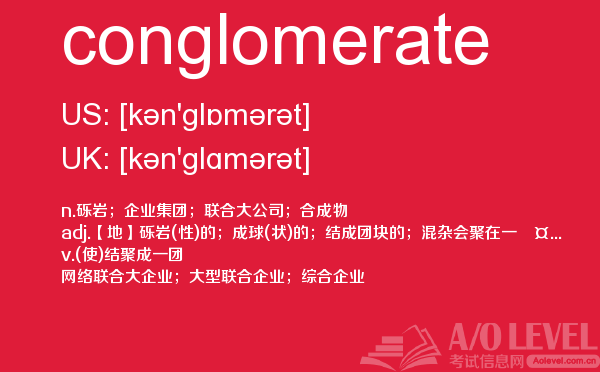 今天课窝a/o-level考试网小编给大家带来alevel考试至关重要的内容a-level单词conglomerate的详细介绍。希望大家能够认真的阅读,在备考a-level中会用到,关于a-level考试时间,alevel考试费用等相关问题,可以关注课窝a/o-level考试网。如果您想了解alevel作用,alevel考试中心英国,alevel咨询中心,香港大学alevel成绩申请等关于a-level考试的相关资讯,请继续浏览并关注课窝a/o-level考试网。