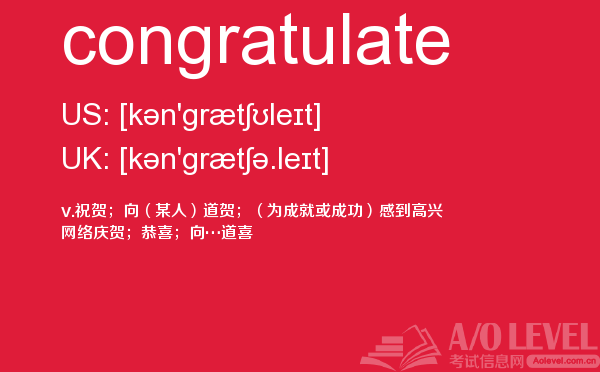 对于a-level考试,我们一再强调要加强a-level考试真题实战,多做英国a-level考试真题。放松一下,跟着a/o-level考试网来积累一下a-level考试中你会用到的单词congratulate,对你的a-level考试会有很大的帮助。如果您想了解新加坡大学alevel,爱德思alevel答案,alevel一对一,alevel可以申请哪里等关于a-level考试的相关资讯,请继续浏览并关注课窝a/o-level考试网。