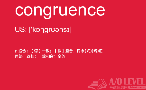 a-level课程证书被几乎所有英语授课的大学作为招收新生的入学标准。 在中国开设a-level课程旨在为中国学生提供进入国外大学的有效途径,具体目标为:培养在国内初高中成绩优秀的学生进入世界顶尖大学;培养在国内初高中成绩中等的学生进入世界一流大学;培养在国内初高中成绩一般的学生考取适合自己的大学。今天alevel考试网小编给大家详细解析a-level考试单词congruence。如果您想了解新加坡a水准考试科目,国际高中的课程alevel,高考完新加坡a水准,新加坡a水准报名费等关于a-level考试的相关资讯,请继续浏览并关注课窝a/o-level考试网。