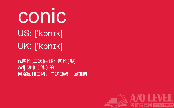 a-level词汇量受到的关注越来越高,很多家长担心a-level考试培训费用,a-level考试录取竞争会不会越来越激烈?这些问题在课窝a/o-level考试网小编都会给大家带来详细介绍,今天a/o-level考试网小编给大家带来的是在a-level考试中的重点词汇conic的详细介绍。如果您想了解alevel学校条件,alevel中文试题,爱德思alevel,英国a水准等关于a-level考试的相关资讯,请继续浏览并关注课窝a/o-level考试网。