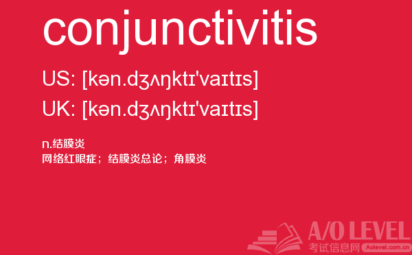 a-level课程适用于年龄在15—18之间,初中毕业以上的在校中学生或具有同等学历的职高生,通常国内a-level学校招收的是高二毕业的学生,并要求参加相关的入学考试,由于a-level课程包括教学及试卷习题等都是英文形式出现,所以这要求学生有较高的英文水平。对于a-level考试适用对象有初步了解之后,下面alevel考试网给大家带来的alevel考试中你需要重点记住的单词conjunctivitis的详细介绍。如果您想了解alevel申请加拿大大学,alevel成绩申请港大,什么是alevel课程,alevel考试时间安排等关于a-level考试的相关资讯,请继续浏览并关注课窝a/o-level考试网。