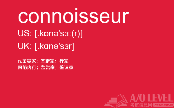 a-level词汇量受到的关注越来越高,很多家长担心a-level考试培训费用,a-level考试录取竞争会不会越来越激烈?这些问题在课窝a/o-level考试网小编都会给大家带来详细介绍,今天a/o-level考试网小编给大家带来的是在a-level考试中的重点词汇connoisseur的详细介绍。如果您想了解上海alevel培训班,上海alevel培训机构,新加坡a水准考试时间,新加坡大使馆a水准考试等关于a-level考试的相关资讯,请继续浏览并关注课窝a/o-level考试网。