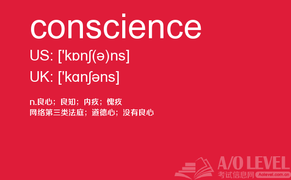 英国高中课程(a-level)的学制为两年:第一年称为as水准,学生通常选择自己最擅长且最有兴趣的3—4门课,通过考试后获得as证书。第二年称为a2水准,学生可选择as水准中优秀的3门课继续学习,通过考试后获得a-level证书。关于a-level学制相信大家肯定有一定的了解,今天alevel考试网想要带大家了解的并不是a-level学制的问题,想要介绍的是a-level重难点单词conscience,希望对大家有帮助。如果您想了解alevel培训中心,英国alevel排名,alevel历年真题,alevel官方网站等关于a-level考试的相关资讯,请继续浏览并关注课窝a/o-level考试网。