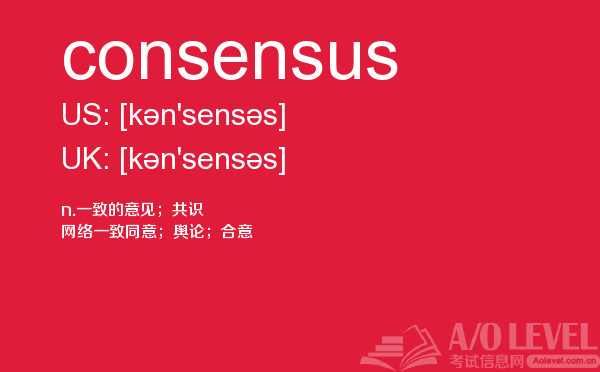 英国a-level学校,从教学质量上来看私立学校更占优势,大部分中国留学生也选择私立学校来读,不过一般都是提前一年来申请学校。中国目前也有20几所a-level学校,每年也同样有走进剑桥牛津等世界顶级大学的学生。所以在国外和在国内都可以选择a-level学校来学习。在前面关于a-level选校的问题已经详细介绍过,那么今天a/o-level考试网小编主要想介绍的是a-level重难点词汇consensus。希望对大家有帮助。如果您想了解墨尔本大学alevel,alevel笔记,alevel高频词汇,新加坡alevel等关于a-level考试的相关资讯,请继续浏览并关注课窝a/o-level考试网。